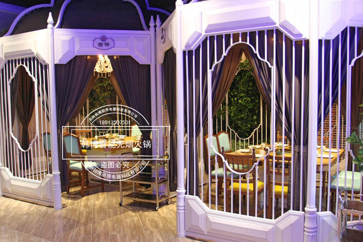 店內的裝修也是很時尚,這里到處都是能讓人賞心悅目的裝飾,特別溫馨浪漫,精心的布置、但細節更動人!因為在這你看不到油煙四處升騰的現象,這一切都是由于使用了韓博智能無煙火鍋設備油煙凈化系統讓油煙魔力般的往下吸走,吸油煙率高達99%,從而營造了一個溫馨時尚的就餐環境。